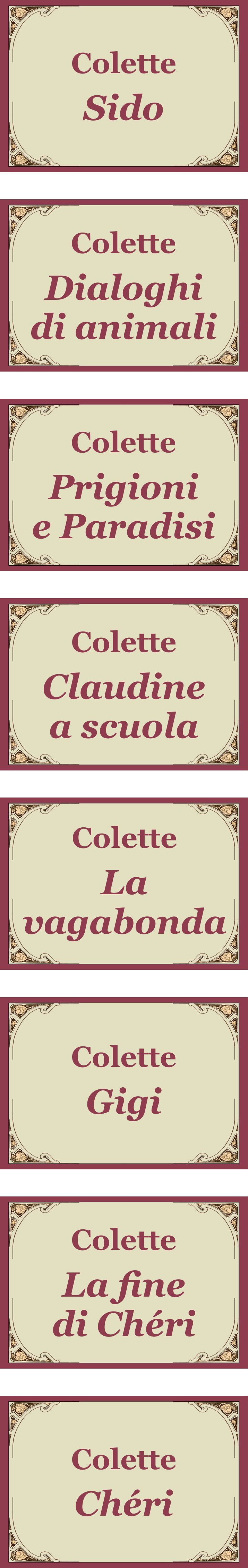 Colette ha scritto oltre cinquanta romanzi e racconti, il cui tema principale sono le gioie e le pene d'amore, il comportamento e la sessualità delle donne combattute fra il legame amoroso e la libertà personale. Colette è stata una donna libera e spregiudicata, che ha raggiunto uno status sociale importante, è stata ammessa all'Accademia Goncourt ed è stata decorata con la Legion d'onore. Oltre che una grande scrittrice, è stata una grande gourmande, che ha scritto di cibo con un linguaggio estremamente originale. In questo libro, ogni capitolo corrisponde ad un periodo della sua vita. La cucina di Sido ha deliziato la sua infanzia. I salsicciotti caldi e la frittata col lardo hanno caratterizzato il periodo del music hall.Durante la guerra, le restrizioni alimentari hanno condizionato quello che arrivava sulla sua tavola, ma per fortuna c'erano les petites fermières a mandarle gli alimenti freschi da lei tanto amati. Gli ultimi anni sono stati allietati dalle ricette raffinate del ristorante Le Grand Véfour - fra cui la lepre alla royale - al piano terra del Palais Royal dove lei abitava.